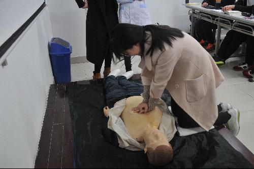 近年来,校园猝死率也逐年上升,尤其是游泳池、操场等运动场所,为进一步提高我校大学生医疗急救能力,保障校园安全,力争在黄金时段开展有效的抢救,最大限度的挽救生命,3月5日,校医院深入理学院为学生开展心肺复苏培训。陈宁副主任医师具有《中国心肺复苏公众培训导师证》,通过形象生动的知识讲解、观看视频,并通过模拟人现场演练,同学们基本掌握了心肺复苏的急救知识和动作要领。医院安排还将在全校范围内开展更广泛的心肺复苏急救培训。