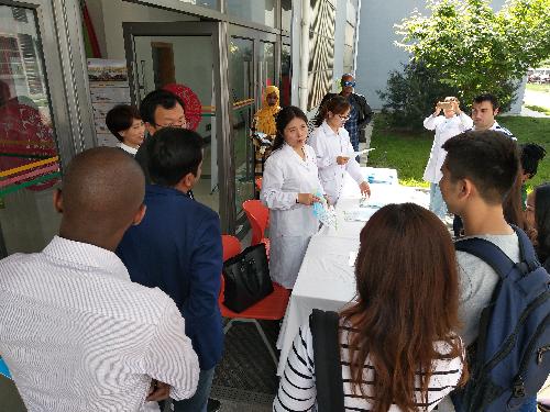 4月26日下午,校医院深入国际学院为留学生开展疟疾防治宣传活动。
