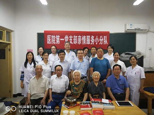 离退休职工党委书记刘晓正对校医院副院长、第一党支部书记张明科率队践行亲情医疗服务表示感谢。张明科强调,医院党支部和离退休党支部“结对子”是医院落实“亲情医疗保健服务”的一项重要内容,也是创办师生满意的校医院一项重要举措。离休干部李佩云见到医生非常高兴,说亲情服务本身就是治疗,人逢喜事精神爽,心理健康增福寿。