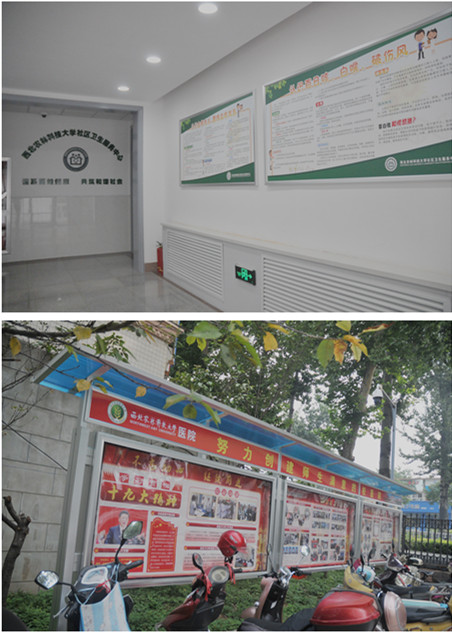 四是营造良好医院就医环境及文化建设。为了方便师生就医,营造良好的就医院环境,弘扬主旋律,传播正能量,校医院利用暑期,完成了院内三个版面宣传栏的制作工作。以努力促进师生满意的校医院为主题,制作了学习宣传十九大精神的《不忘初心,继续前进》、宣传党建工作的《党建工作掠影》和学先进、树榜样、反映医院文化建设的《荣誉榜及医护人员风采》三个大型室外宣传展板;与此同时,为提高广大师生员工的社保和慢性病、传染病的防疫知识,在门诊大厅及医附楼一层社区服务中心制作了《社保知识》《结核病防治》《百日咳防治》等宣传板;门诊大厅导医咨询台安置到位,为师生就医咨询创造了良好条件。