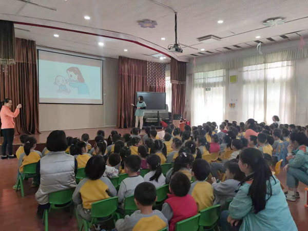 耳鼻喉科副主任医师岳艳为孩子们带来“保护听力健康,聆听美妙世界”的生动宣教,通过视频,耐心细致地讲解了各种保护耳朵的方法,如不要去噪音太大的地方、不能用尖锐的东西抠耳朵、不能把一些小物件塞到耳朵里等。通俗易懂、互动性强的讲座,激发了孩子们的学习热情,大家听得非常认真,踊跃地回答岳医生的提问。