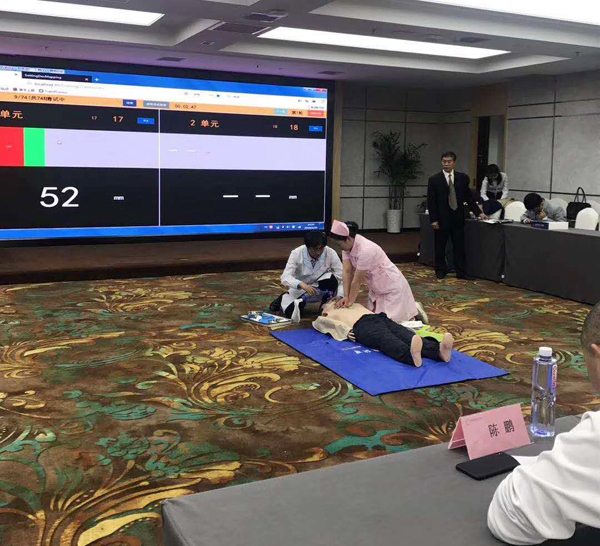 比赛内容包括心肺复苏胸外按压、电除颤、恢复自主呼吸等,采取2人一组式抢救,考验医务人员的团队协作和急救技能熟练程序。当发现有人窒息时,抢救的黄金时间只有4-6分钟,而在这4-6分钟之内,正确的实施心肺复苏,将极大地提高抢救的成功率。随着我国猝死率的逐年上升,黄金四分钟的现场急救显得尤为重要,这就要求我们必需全民学习急救技能,从而可以为身边的亲朋好友,甚至陌生人挽救生命。
