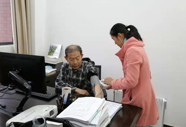 与此同时,书记颜玉怀带领一分队主力医生王建娜等深入到高层次人才办公室进行一对一服务。通过查以往病例、听心肺、问健康、量血压、测血糖、外科查体等方式,全方面把握其健康状况,有针对性的为每一个人进行个体化的健康指导。目前校医院将全校高层次人才服务工作已安排部署妥当,责任到人,校医院走进农学院开展高层次人才服务活动标志着校医院对高层次人才的服务活动开始全面展开,这也是校医院实施全面中国健康战略的又一个具体落实。