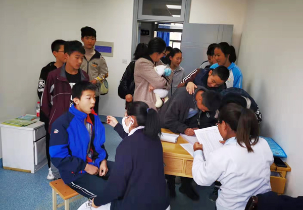 周六同样奋战在工作岗位的还有预防保健科的同事们。为了不影响附中的教学秩序和家长的正常工作,利用周六为初一初二学生接种流感疫苗。上午8时,预防保健科外陆续排起了长队,预防接种室内,9名工组人员正在忙碌地给前来接种流感疫苗的附中学生接种。预检、登记、核对、接种、留观,每个程序严格按规范操作。周六一天,共有311名学生接受疫苗接种。预防保健科同时抓住机会,对学生和家长进行手卫生、公共场所卫生知识及传染病知识的健康教育。