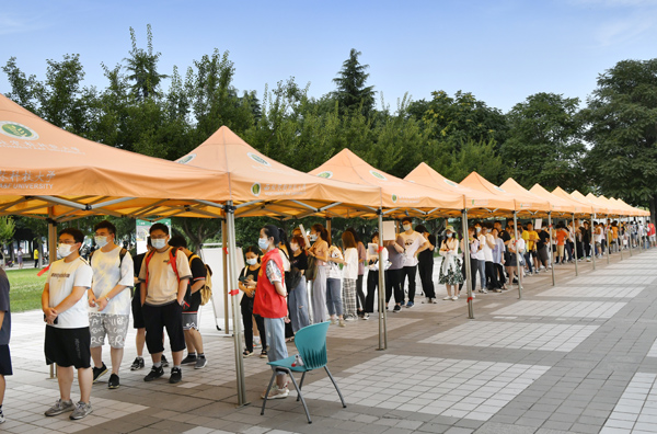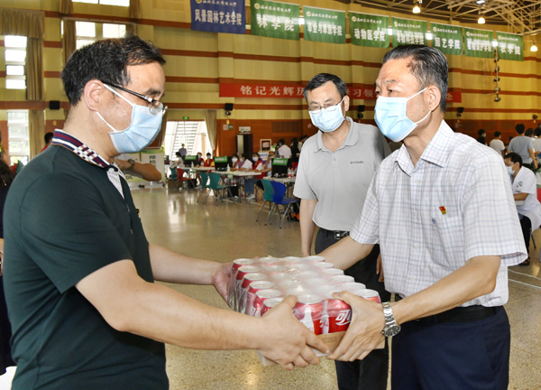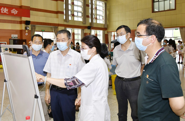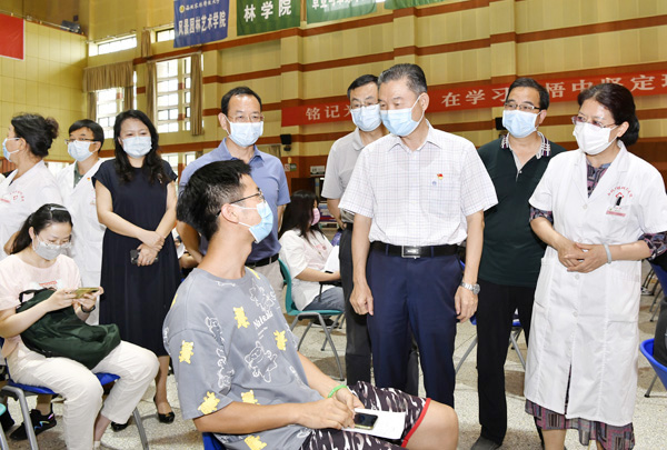 6月22日下午,校党委书记李兴旺、副校长马建华、党委副书记闫祖书和副校长赵敏娟到北校区绣山活动中心疫苗集中接种点,看望慰问奋战在疫苗接种一线的医务工作者和学生志愿者,向他们致以崇高的敬意和亲切的问候。